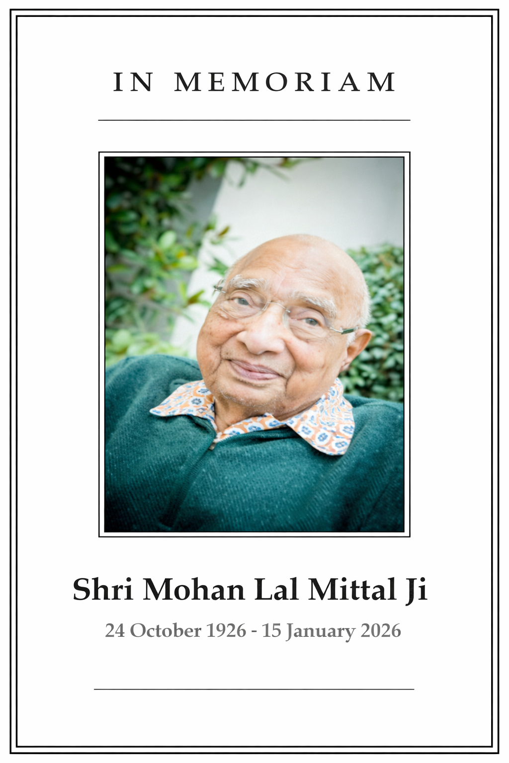 With hearts weighed down by immeasurable grief, we humbly share the sorrowful news of the passing of Shri Mohan Lal Mittal Ji, a visionary pioneer and globally celebrated icon of the Steel & Metal industry, whose extraordinary life journey inspired generations across the world.